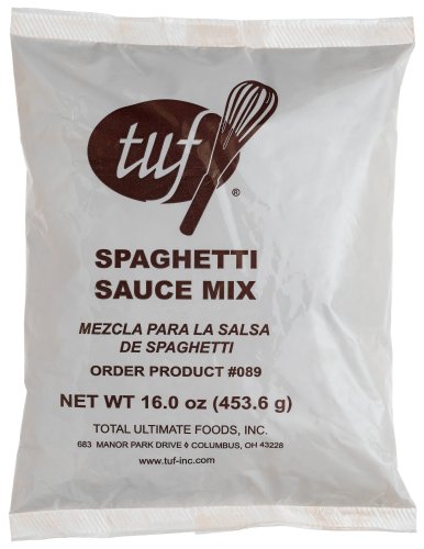 TUF gravies include both traditional flour-based cook-up varieties, as well as convenient instant gravies that mix up with 160-190° water. Flavor varieties include brown, chicken, pork and country (both with and without pepper). In addition to traditional favorites such as cheddar, nacho and Alfredo, TUF cheese sauces also include unique White Sicilian Pizza Sauce and Monterey Jack Cheese Sauce. Various pack size options ensure operators have the flexibility of choosing the right one for their facility’s needs, avoiding costly waste.Total Ultimate Foods Spaghetti Sauce Mix, 16-Ounce Units (Pack of 8) Feature