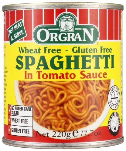 Just heat and serve. This product is naturally wheat free and gluten free and is produced from a superior blend of rice and legume split pea specifically developed to assist the inclusion of nutritious legumes in our diet. Prepared with a delicate tomato sauce containing no added cane sugar, no dairy and no animal derivatives, you are assured of the quality of this product. This special combination of rice as the higher complex carbohydrate source and split pea as the protein source provides nutritional qualities that are not available as individual grains. Ideal as a meal or in between snack. Made in Australia from local and imported ingredients.OrgraN Spaghetti in Tomato Sauce, 7.7-Ounce Cans (Pack of 12) Feature